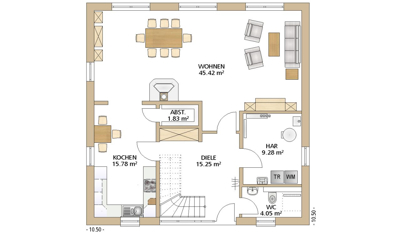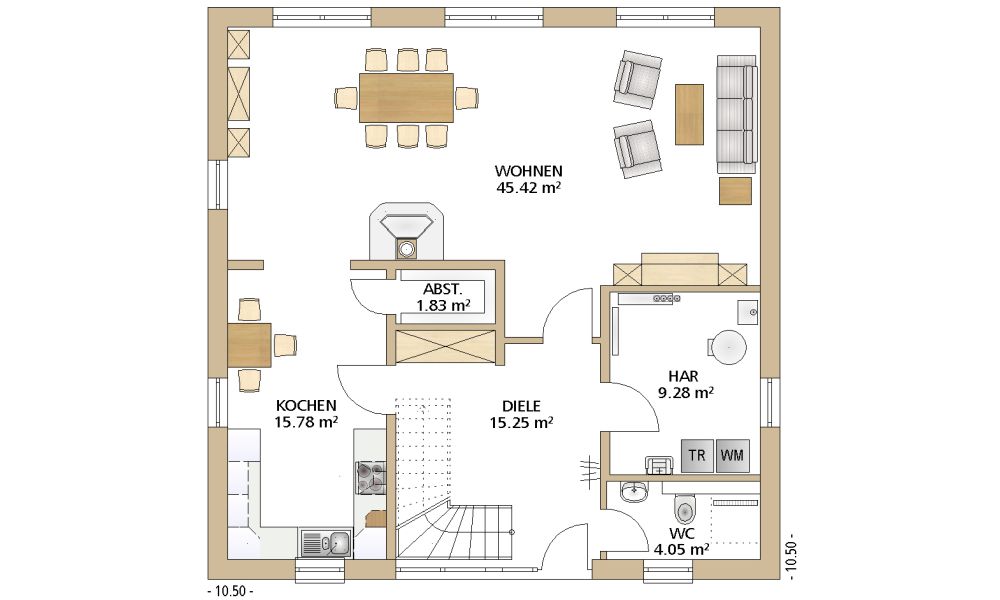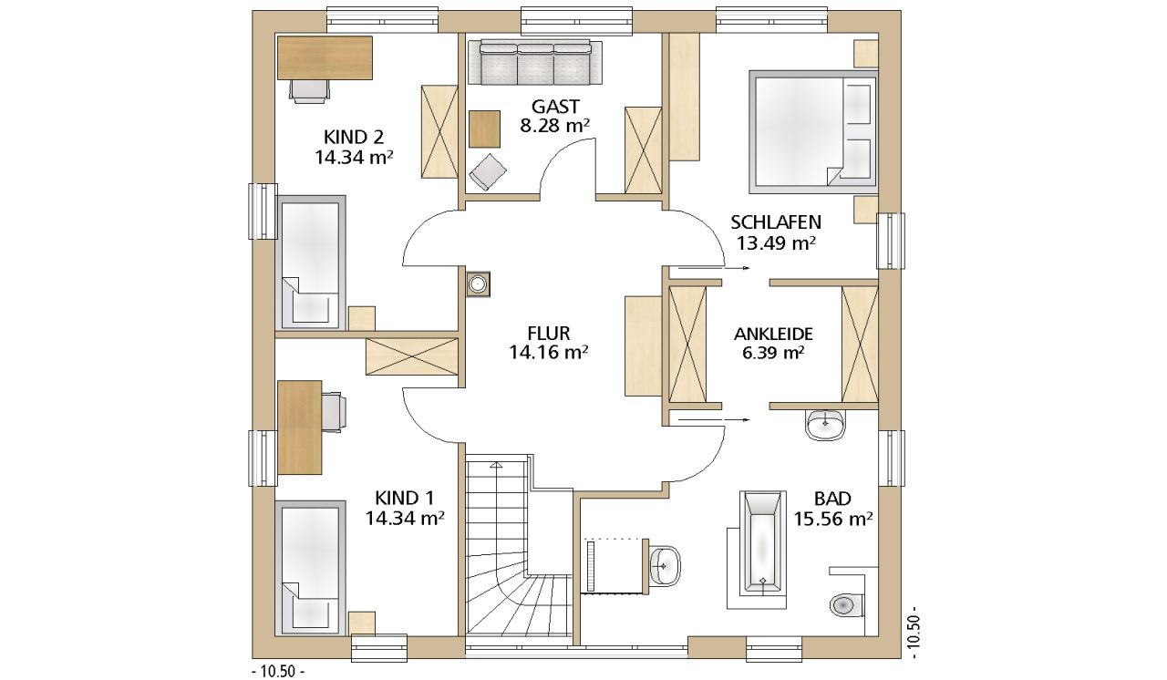 10,50 x 10,50 m -
