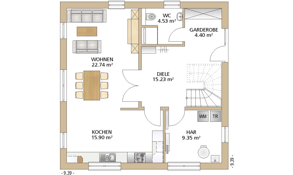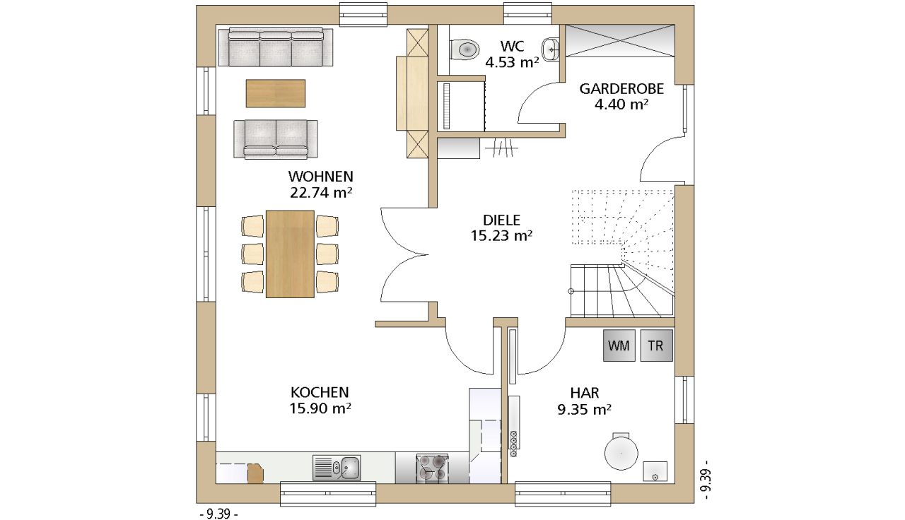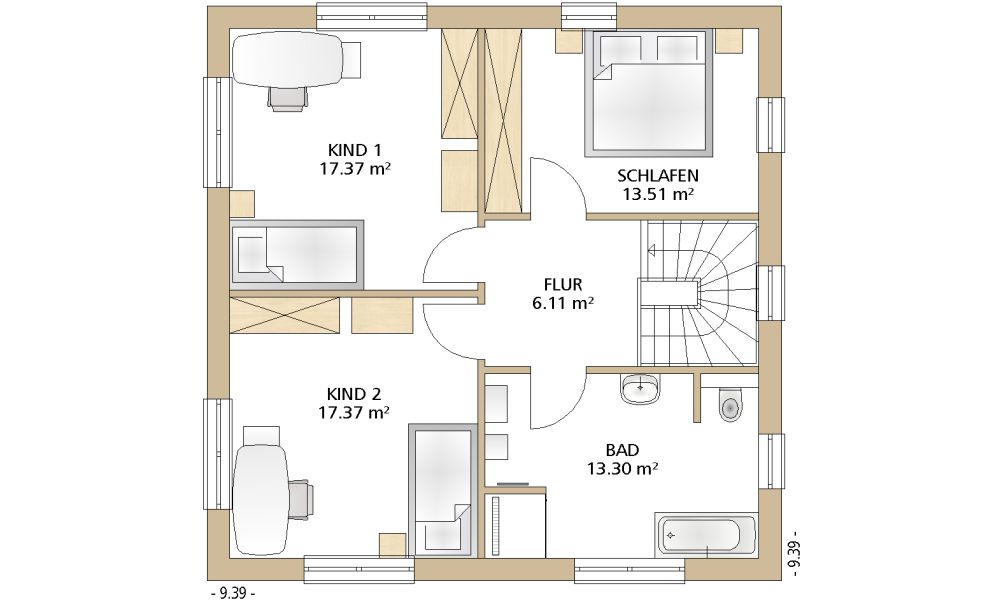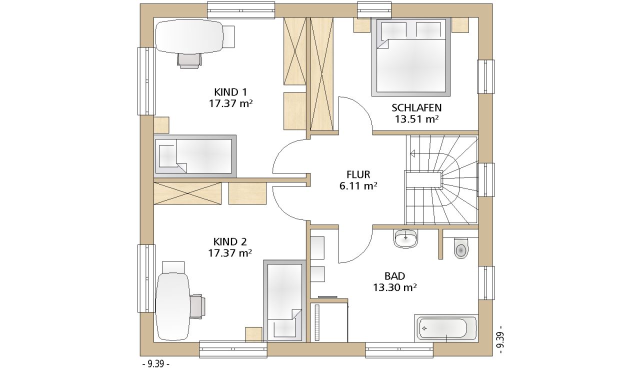 9,39 x 9,39 m -