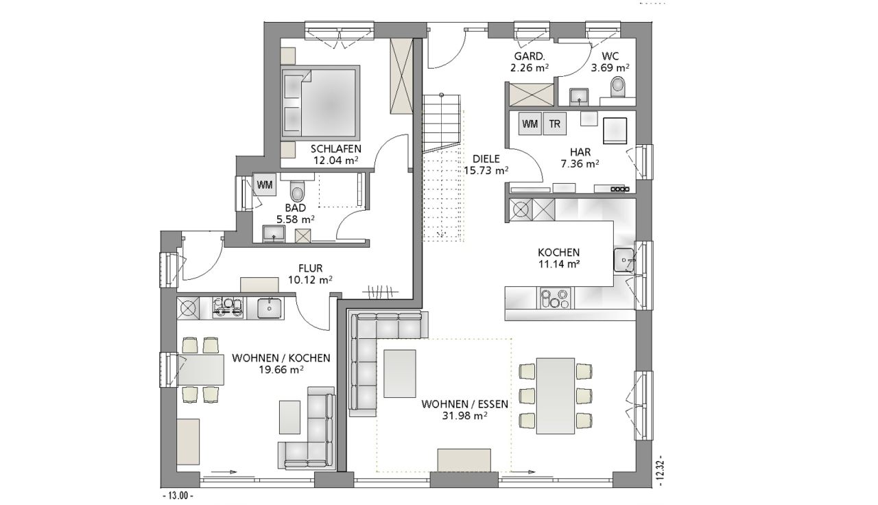 13,00 x 12,32 m -